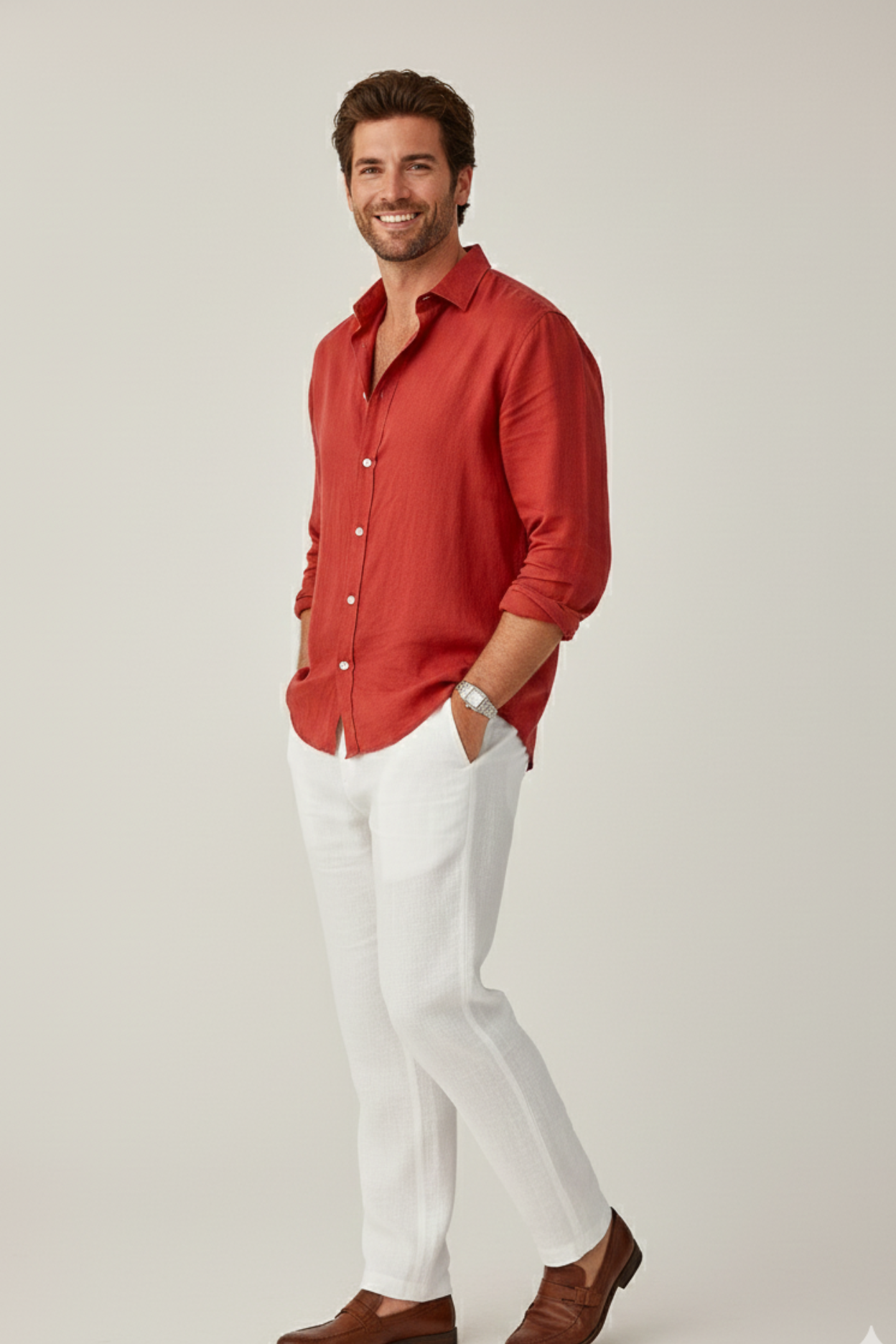 Old Money Riviera Linen Set – Crimson Red Shirt & White Linen Pant
